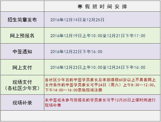 2017年寒假班网上支付已经结束,未中签或未参与预报名的学员家长可于12月25日上课时间进行现场补录。