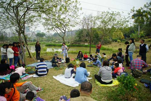 阳光下,吹着春风,我们满载去到插画点:中心湖里面的草坪。在微微花香中插花,我们把“花熏”的美好记忆永远留在脑海中。